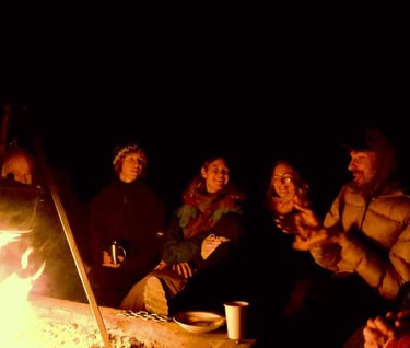 what happens when we gather as humans around a fire to share stories, songs, stirrings, silences and questions?
